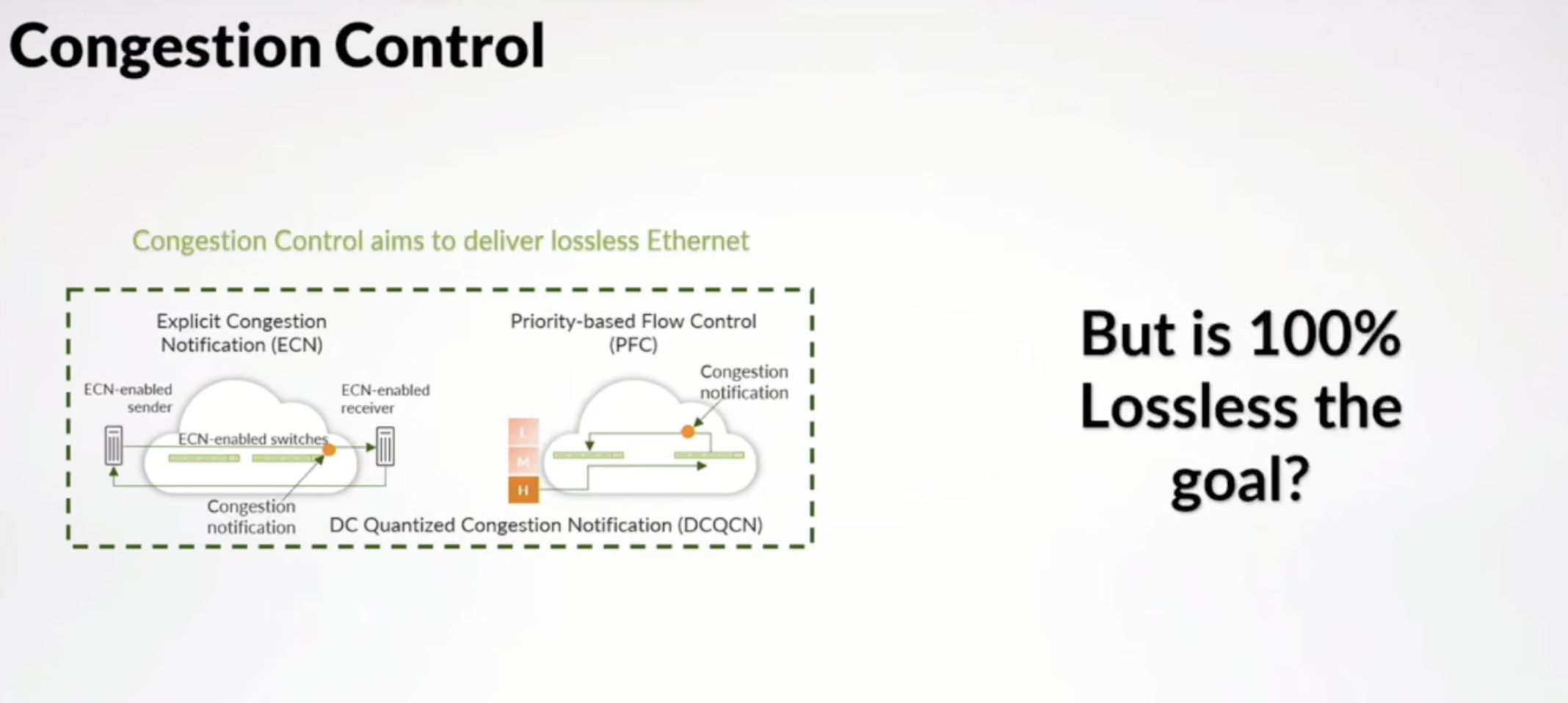 So now, for congestion control, we have the industry-wide used DCQCN as Congestion Control. However, an interesting statement from Juniper was that we don’t need a lossless network for AI/ML workloads and it can be actually beneficial to let the application breath rather than chase 100% lossless.