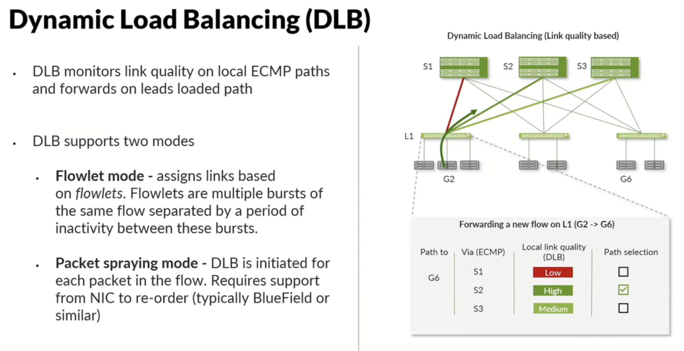 Every data center network (as a matter of fact, any network in general) needs congestion avoidance and congestion control. We want to absolutely avoid any congestion, and to address challenges around elephant flow load balancing, Juniper will use DLB either via Flowlet mode, where a single flow will be split into multiple flows and load balanced, or using packet spraying.