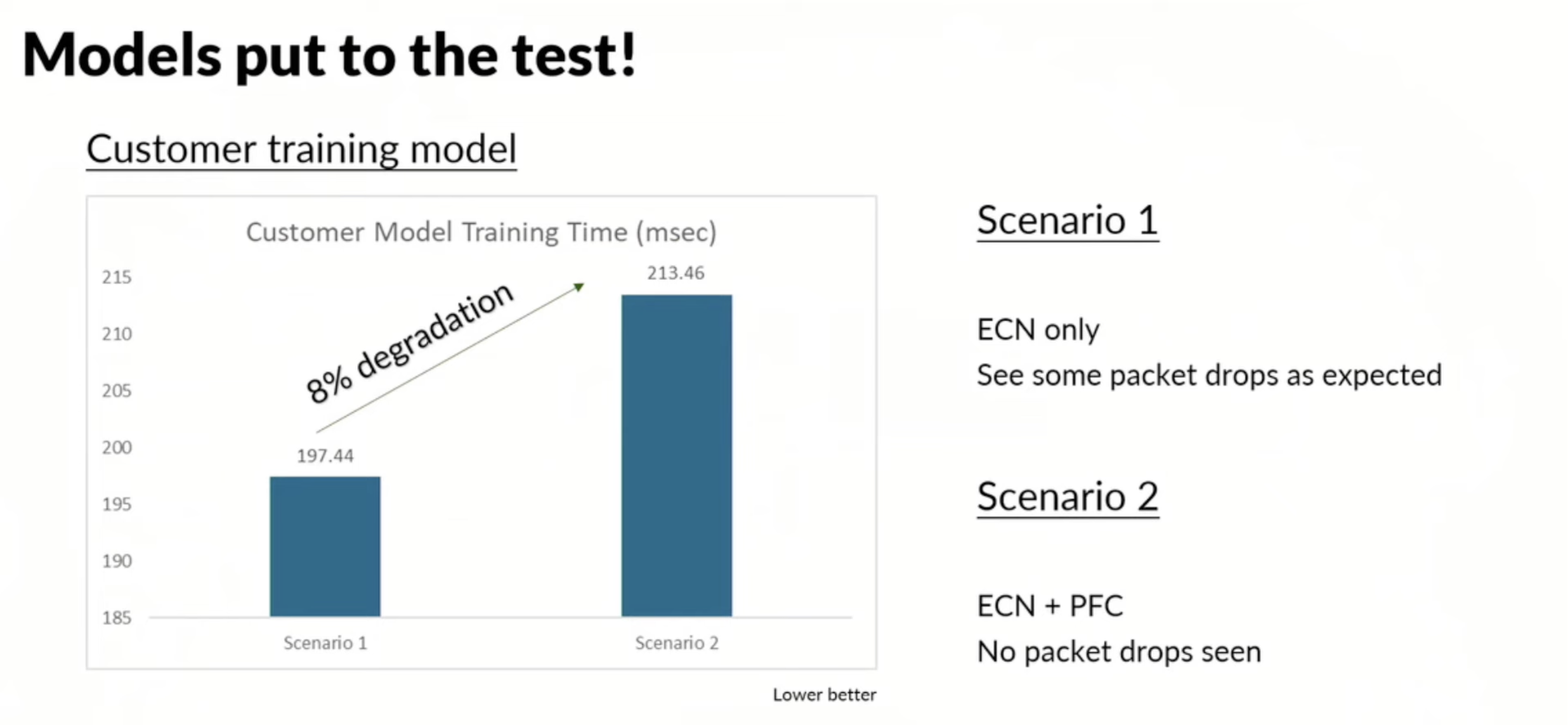 Now, when we “see some packet drops,” do not expect we are talking about 10%+ packet loss. We are talking about less than 0.1% packet loss. However, this goes against the general statement that you need a lossless network to have a reliable and high-performing AI/ML network.